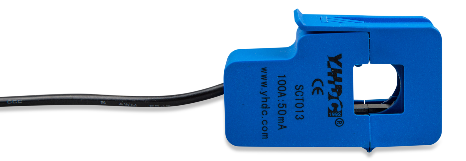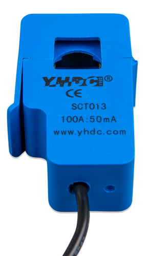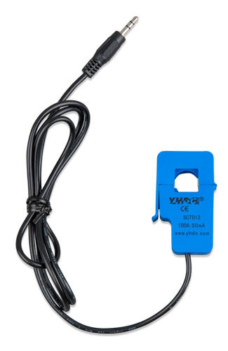 Transformateur de courant de 100 A:50 mA pour MultiPlus-II / MultiGrid-II permettant d'implémenter les fonctions PowerControl et PowerAssist et d'optimiser l'autoconsommation grâce à une sonde de courant externe. Courant maximal : 32 A.