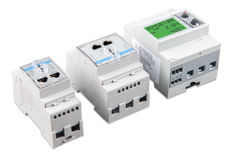 Les compteurs d'énergie ET112 — pour les systèmes monophasés de 100 A maximum — et les ET340 — pour les systèmes triphasés de 65 A maximum — sont généralement utilisés dans un Système de stockage d'énergie.