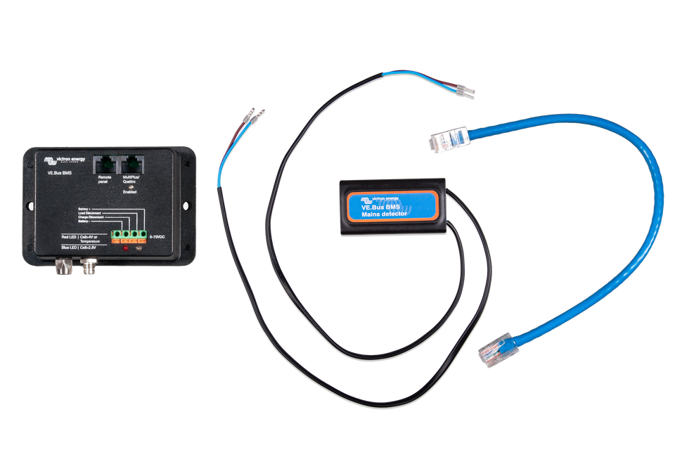 Chaque cellule individuelle d'une batterie LiFePO4 doit être protégée contre la surtension, la sous-tension et la surchauffe. Les batteries LiFePO4 de Victron intègrent la fonction d'équilibrage des charges, le contrôle de température et de tension (acronyme : BTV) et elles connectent le BMS du VE.Bus avec deux ensembles de conducteurs circulaires M8. La fonction BTV de plusieurs batteries peut être connectée en série. Veuillez consulter la documentation relative aux batteries LiFePO4 pour de plus amples détails.