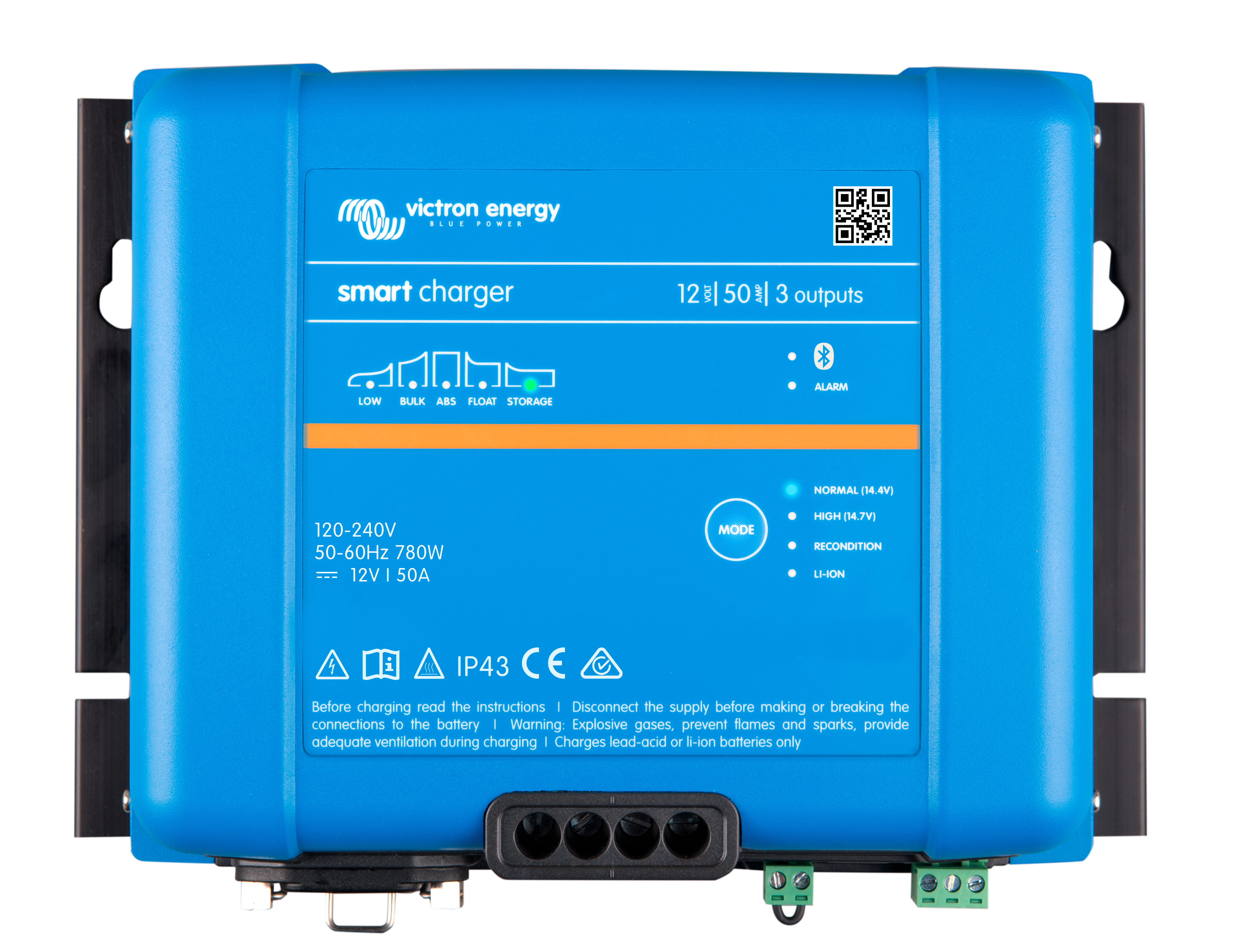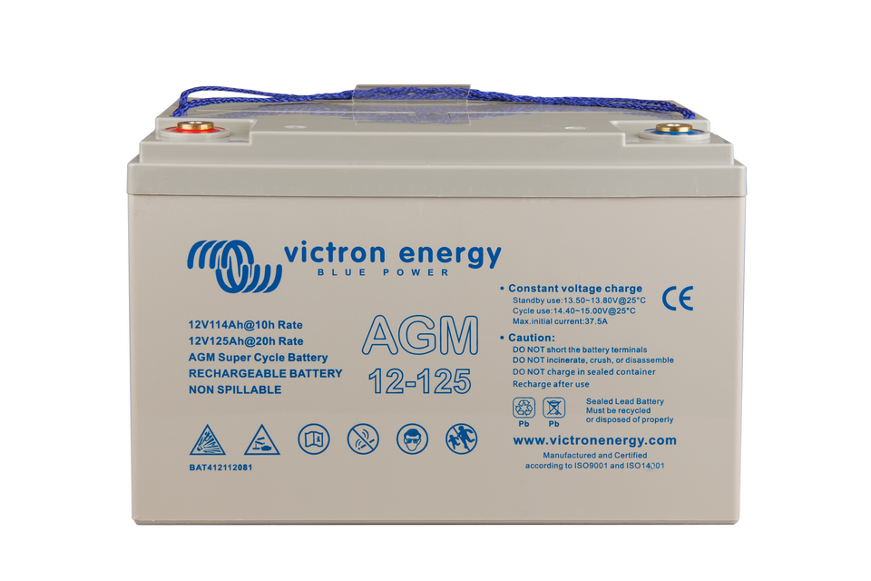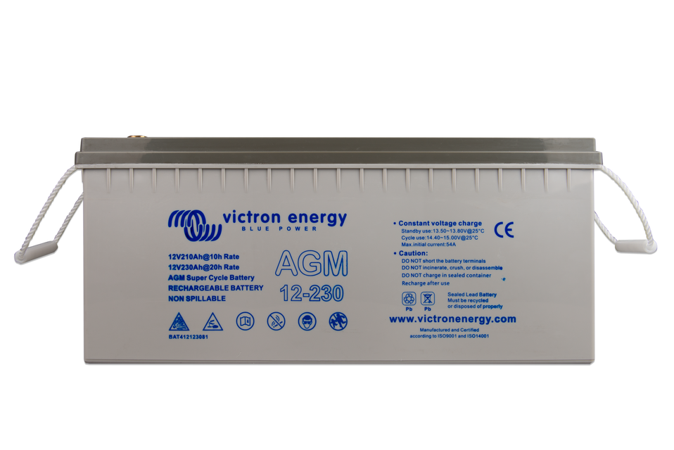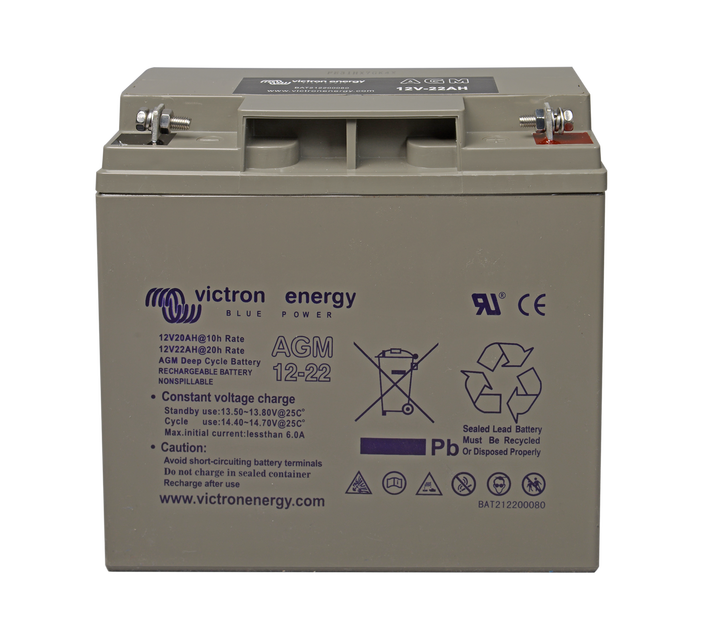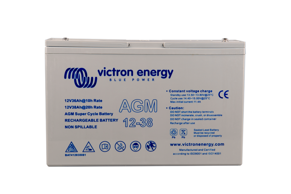 La gamme de batteries GEL offre une meilleure durabilité du cycle de décharge ainsi qu'une durée de vie plus longue dans l'ensemble. L'utilisation de matériaux de haute pureté et de grilles au plomb-calcium garantit que aussi bien les batteries AGM que les batteries GEL présentent une autodécharge faible et qu'elles ne tomberont pas à plat même après de longues périodes sans être chargées. Les deux gammes sont fournies avec des bornes en cuivre plates perforées M8, ce qui garantit le meilleur contact possible. Du coup, des bornes de batteries ne sont pas nécessaires. Les batteries sont conformes aux spécifications CE et UL concernant les conteneurs ininflammables ABS, et elles sont couvertes par la garantie mondiale de deux ans de Victron.