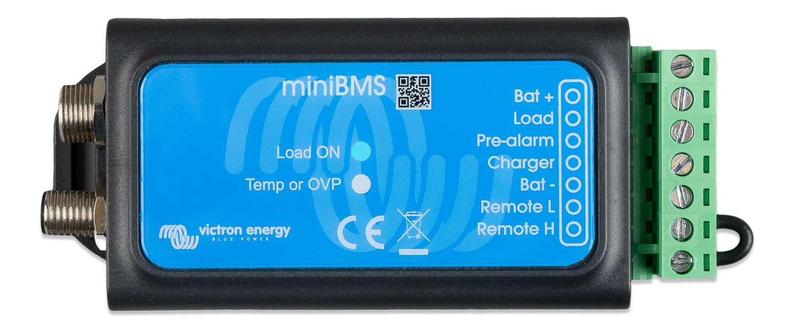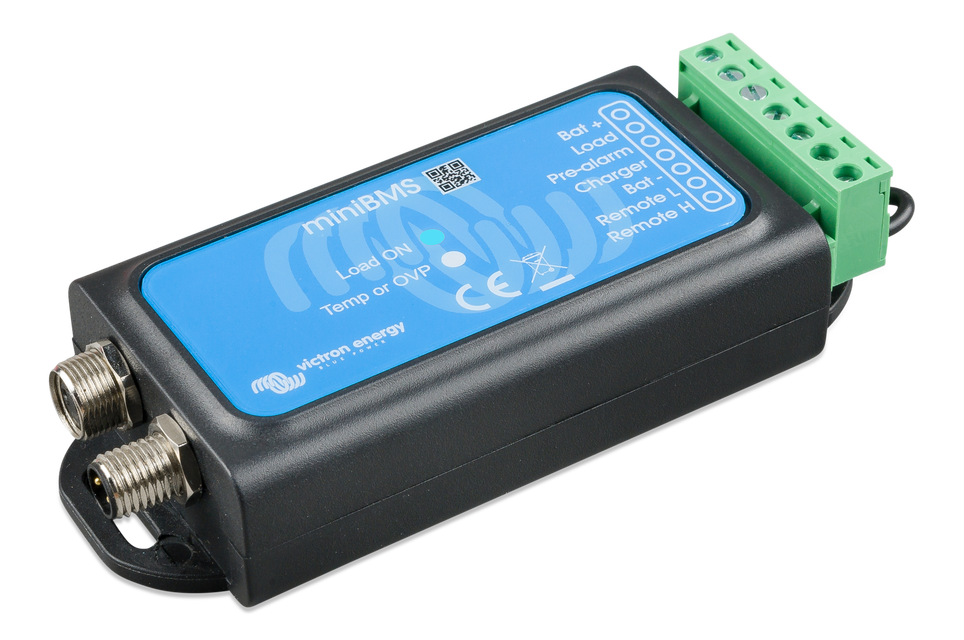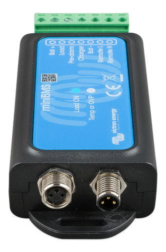 Le miniBMS peut remplacer le BMS du VE.Bus dans plusieurs applications. Il n'est cependant pas adapté pour être utilisé avec des convertisseurs/chargeurs MultiPlus et Quattro avec VE.Bus avec VE.Bus : il ne dispose d'aucune interface VE.Bus. Le miniBMS est conçu pour travailler avec des batteries Victron Smart LiFePo4 disposant de connecteurs circulaires M8.