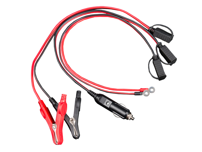 Selon l'application, des cosses, des œillets ou un allume-cigare (tous compris) peuvent être raccordés au chargeur.