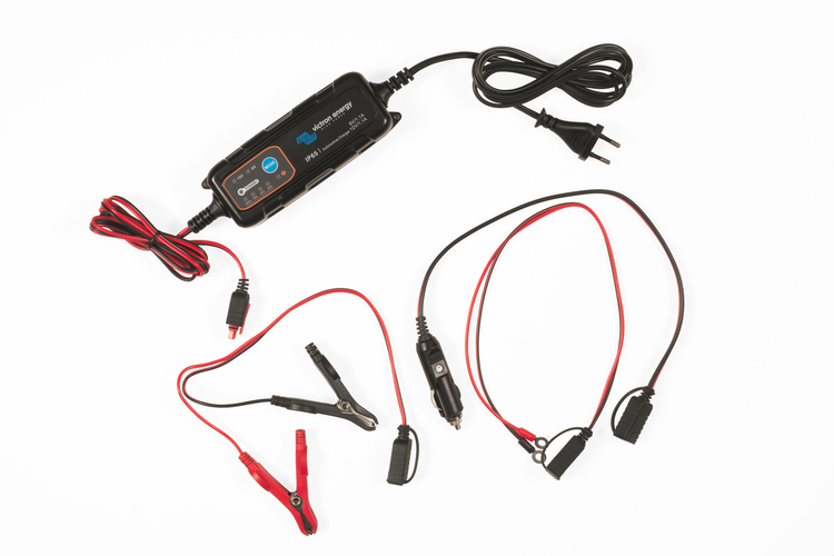 Chargeur pour des batteries de 12 V avec deux options de courant de charge :