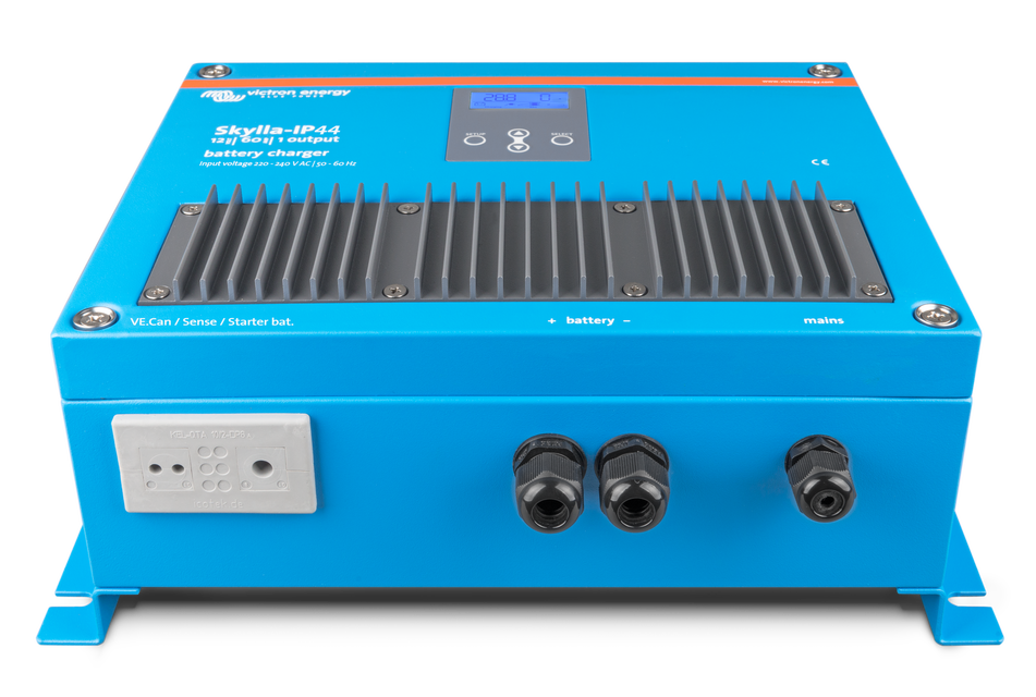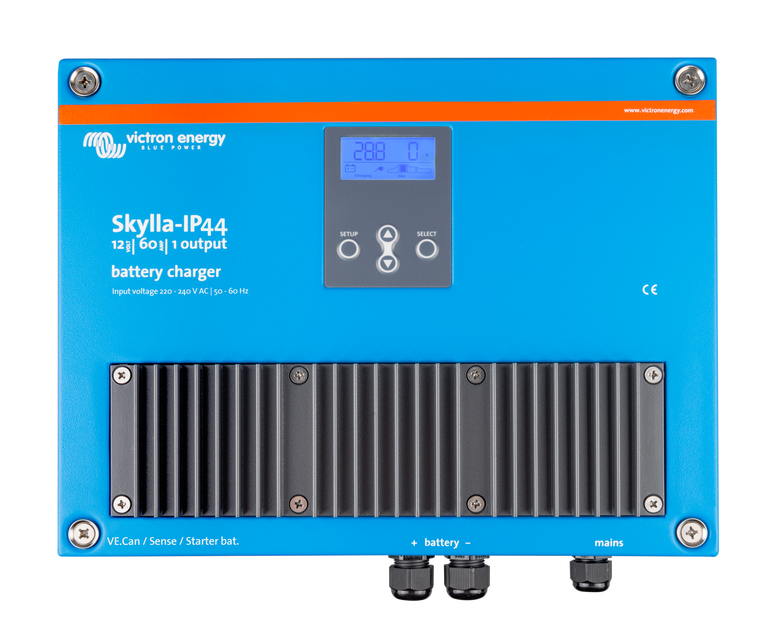 Le Skylla-IP44 (1+1) dispose de 2 sorties isolées. Destinée à l'entretien d'une batterie de démarrage, la seconde sortie est limitée à environ 3 ampères sous une tension légèrement plus basse.