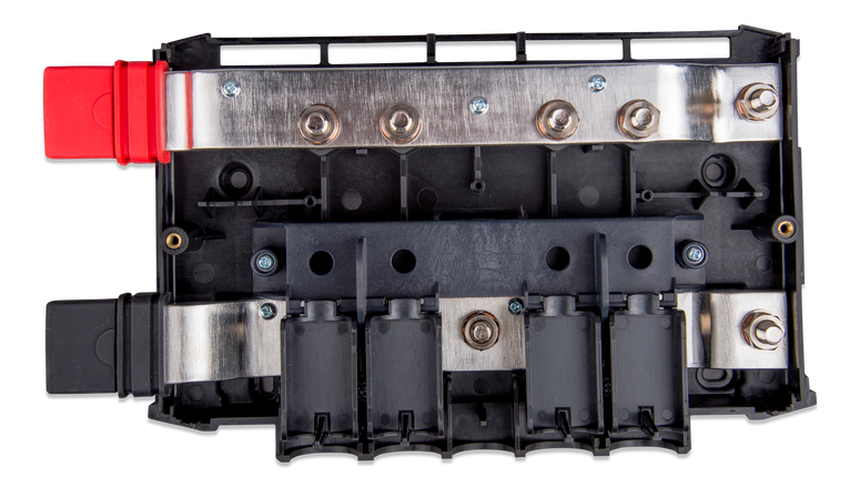 Une barre omnibus CC modulaire utilisée pour connecter les batteries au système de distribution CC Lynx.