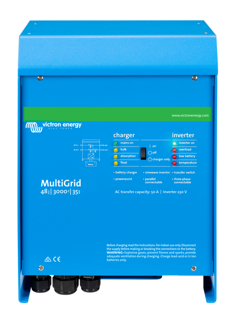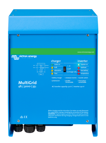 Jusqu'à 6 Multi peuvent fonctionner en parallèle pour obtenir davantage de puissance en sortie. Un fonctionnement triphasé ou en phase divisée est également possible. Veuillez vérifier nos fiches techniques pour savoir quels modèles peuvent être montés en parallèle, en triphasé ou en phase divisée.