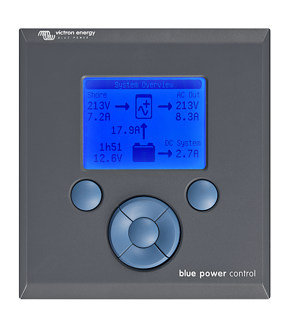 Le Tableau Blue Power apporte un contrôle intuitif à tous les appareils connectés au réseau VE.Net. Il peut être utilisé pour visualiser et configurer toute une série de paramètres sur les appareils VE.Net. De plus, son écran donne une vue d'ensemble et il est complètement personnalisable. Cela en fait l'outil idéal de surveillance pour votre système électrique.