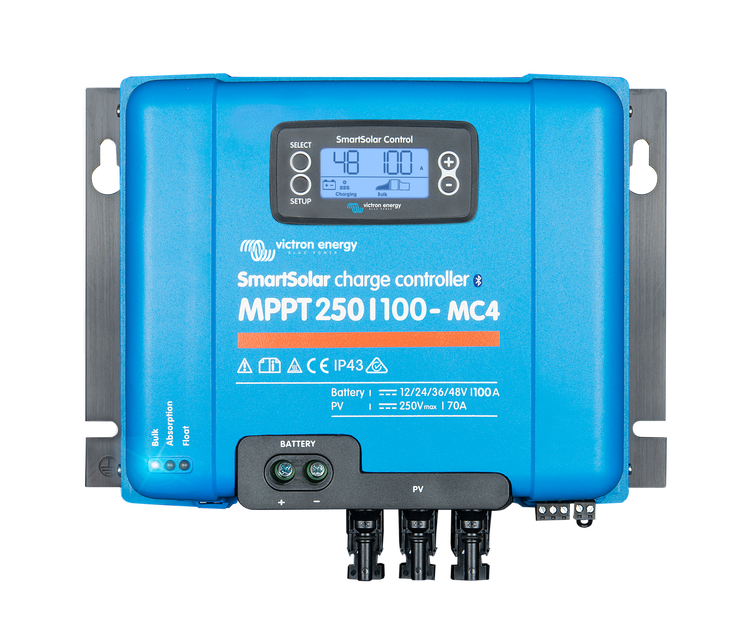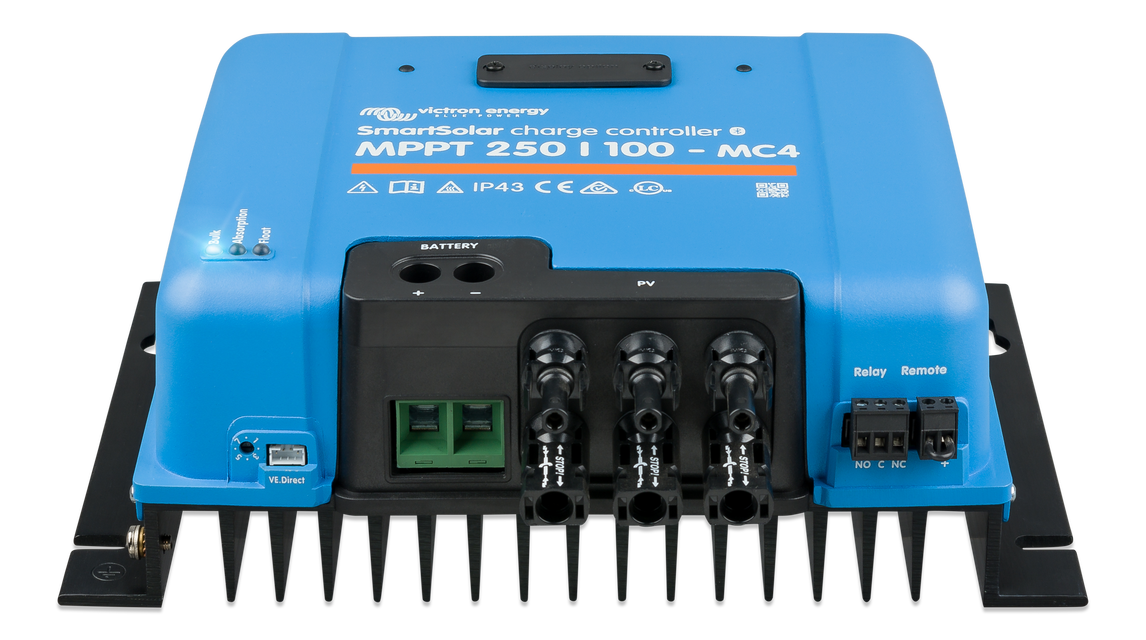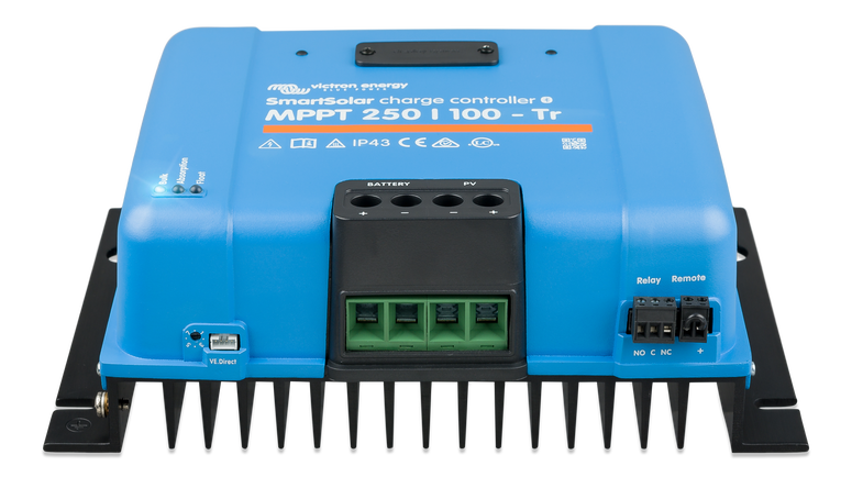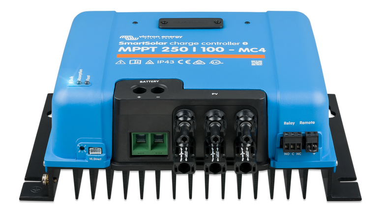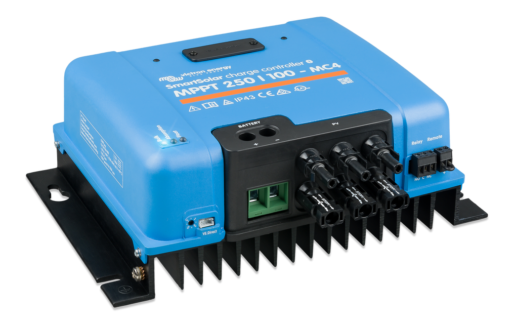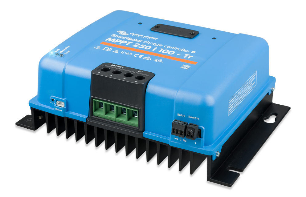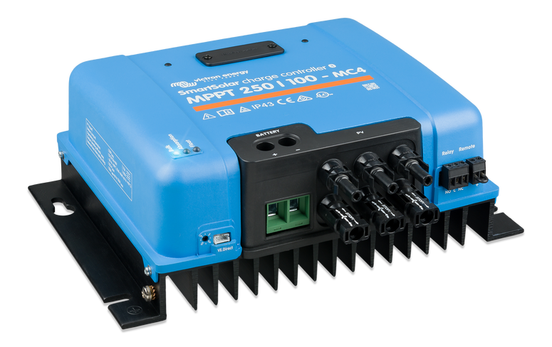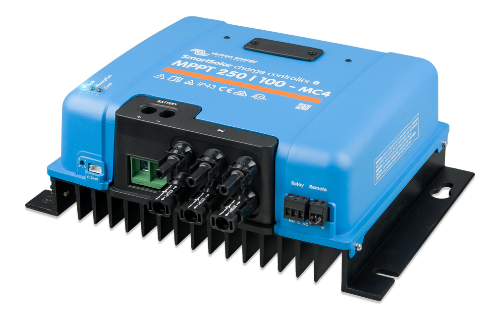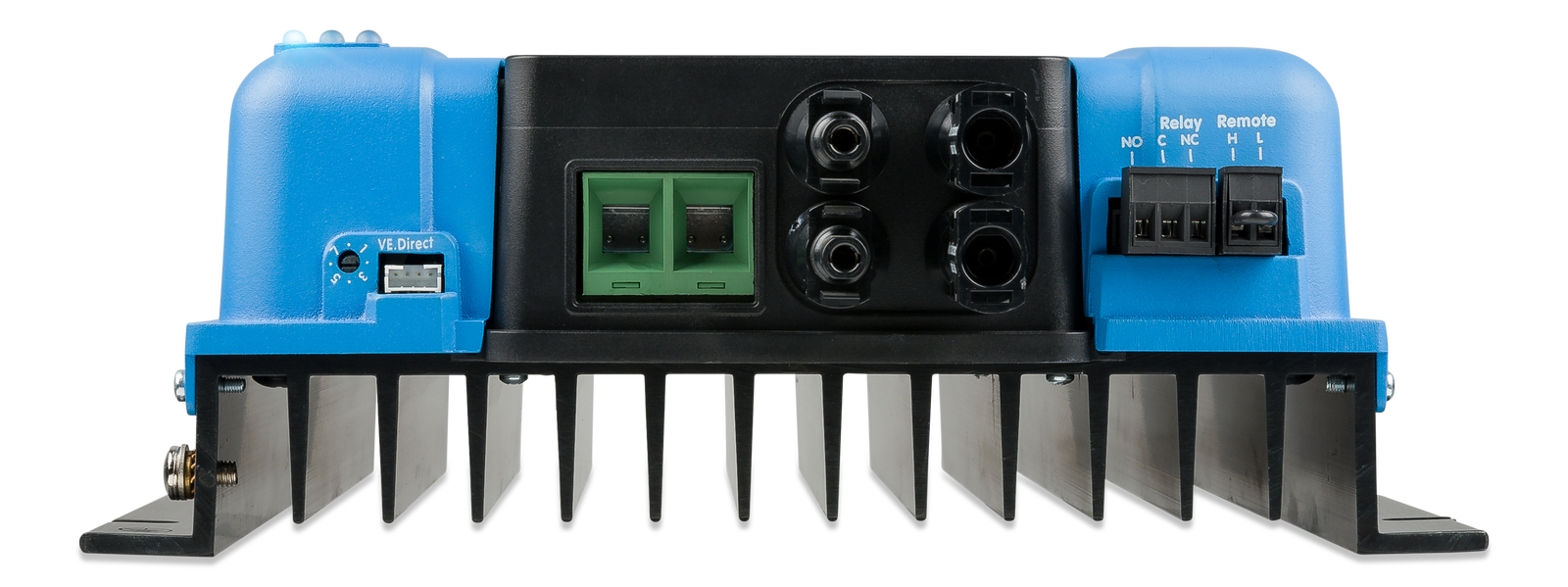 Contrôler et superviser à distance les multiples fonctions de votre chargeur SmartSolar MPPT en raccordant une clé électronique Bluetooth et en l'associant à votre smartphone ou tout autre appareil à travers VictronConnect. Si votre installation est connectée à internet, le Portail de gestion à distance de Victron (VRM) vous permet d'accéder à toute la puissance de votre MPPT, n'importe quand, n'importe où : les deux services sont gratuits. Pour des installations à distance — sans connexion à internet ni de signal téléphonique à proximité — vous pourrez éventuellement surveiller votre MPPT en l'associant par Bluetooth à un appareil disposant de la technologie LoRaWAN (réseau étendu à longue portée), disponible en option.
