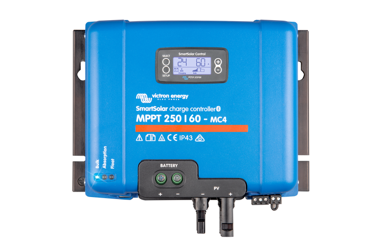 En ajoutant à votre système l'écran de commande SmartSolar, vous pourrez vérifier en un clin d'œil l'état de votre chargeur et le niveau de stockage de batterie. Branchez-le simplement sur le devant de votre chargeur MPPT pour pouvoir surveiller votre système en temps réel et pour configurer ses fonctions.