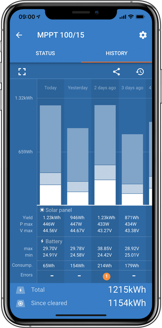 La fonction de sortie de charge intelligente évite les risques de dommages causés par l'utilisation de batteries « à plat ». Vous pouvez configurer la tension à laquelle le SmartSolar déconnectera une charge si nécessaire — empêchant ainsi un tirage excessif sur vos batteries. Et voici le plus intéressant : SmartSolar essayera d'atteindre une recharge de 100 % tous les jours. Si cela n'est pas possible — par exemple durant les périodes de mauvais temps — il augmentera la tension de déconnexion, quotidiennement, jusqu'à la recharge complète. Nous appelons cette fonction BatteryLife, car elle permet de maintenir votre batterie en état et de rallonger sa durée de vie.